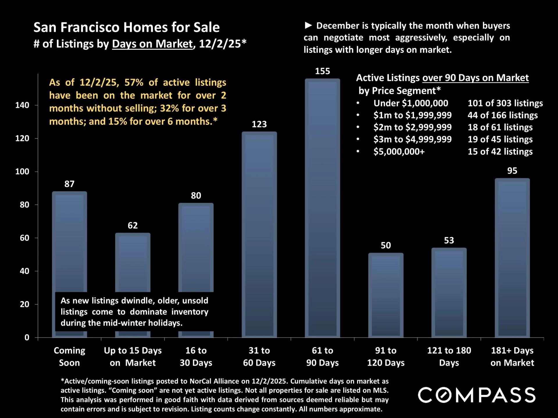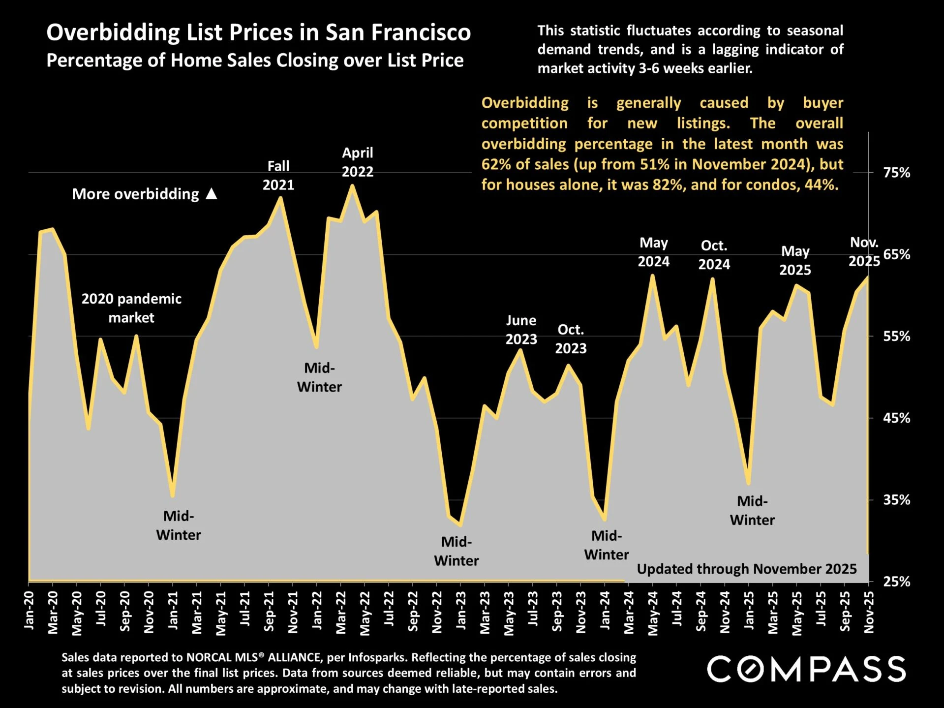 As illustrated within this report, by virtually every indicator – prices, inventory, overbidding, speed of sale – the San Francisco market this past fall saw a stunning surge in demand, which we ascribe to the accelerating AI startup boom in the city. San Francisco now has one of the most heated markets in the country.